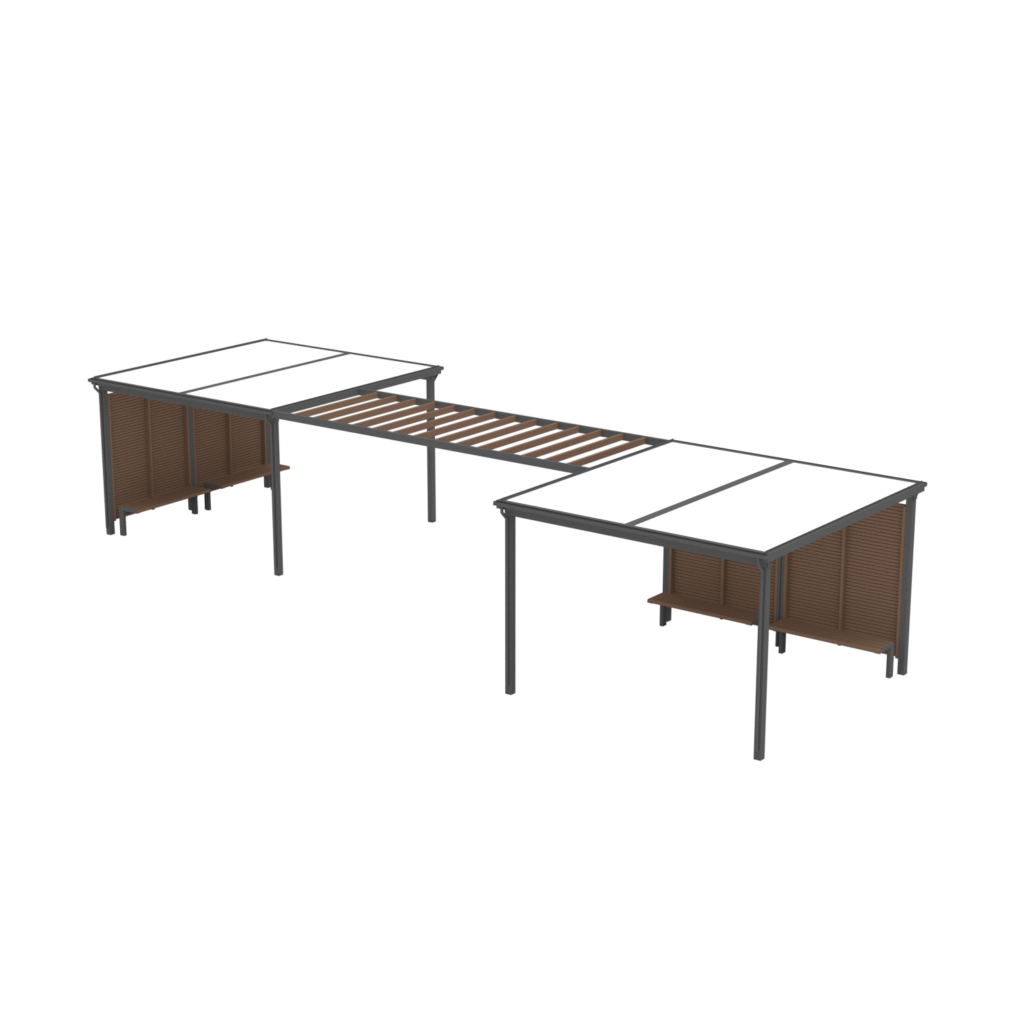AluShelin pyöräkatokset mallinnettu kampukselle. Ulkoluokkakatos toimii myös taukokatoksena.